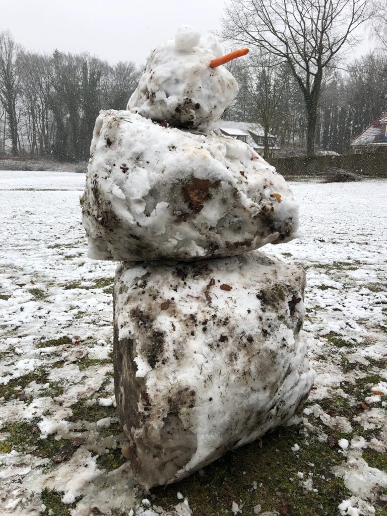 Zum Abschluss, an Tag 3, lag so viel Schnee, dass wir uns nur zu einer kurzen Einheit entschlossen: Die vier Ecken der Wertschätzung mit einer Reflexionsrunde hatten wir noch zum Vormittag geplant, danach ließen wir die Klasse draußen im Schnee spielen, wodurch auch er entstand: Günther, der Schneemann.