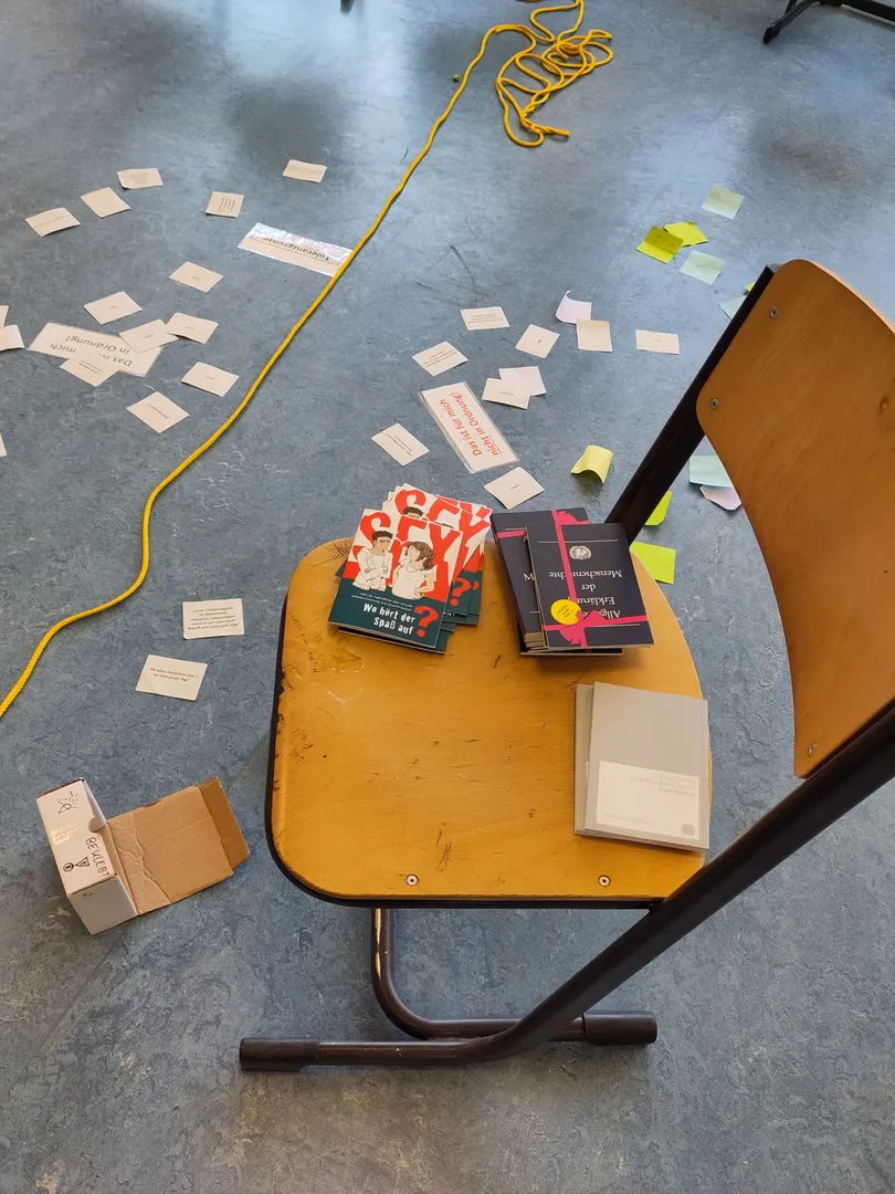 Der Workshop lief nicht optimal – aber dank Unterstützung von Schulsozialarbeit und Lehrkräften und einigen engagierten Schülerinnen und Schülern und diversen Plananpassungen konnten wir im zweiten Teil sehr spannende Gespräche in der Gruppe miteinander führen. Das war wunderbar!