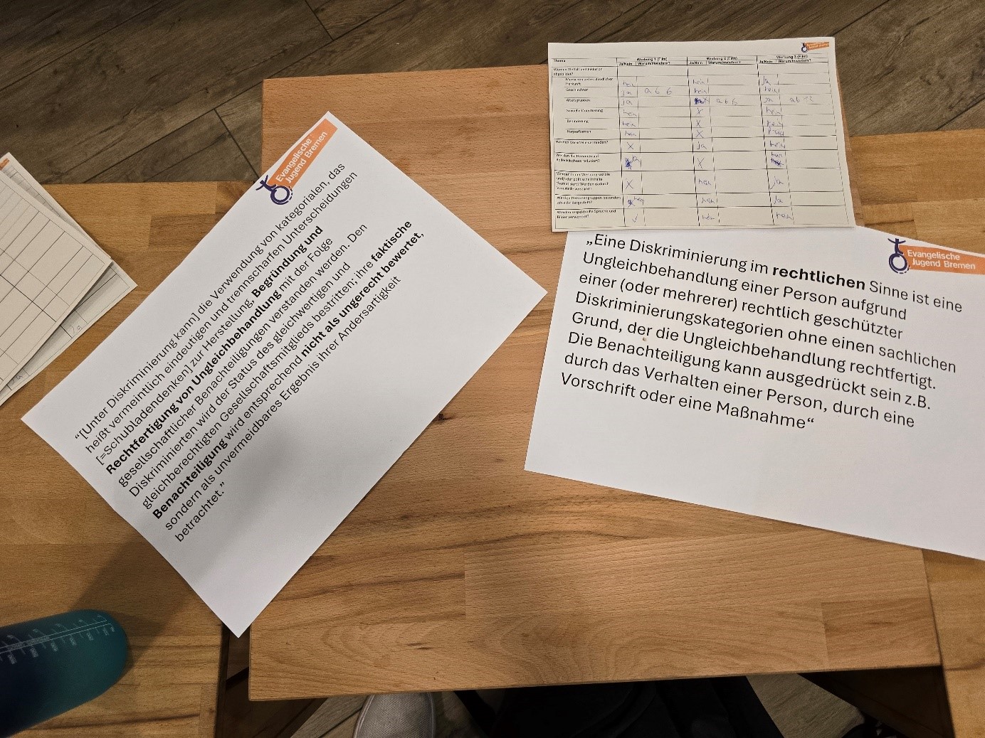 Am 12.09.2024 hatte PiKS ein Projekt ‚Diskriminierung und eine ihrer Formen‘ mit einer 9. Klasse aus der Oberschule am Park. Das Projekt fand im Jugendbereich des Gemeindehauses Oslebshausen statt. Um kurz vor neun war die Klasse vor Ort. Es waren weniger Schüler*innen als erwartet, deswegen haben wir uns dazu entschieden unten im Jugendbereich weiterzumachen.