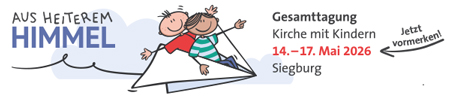 Von Donnerstag, den 14.5. bis Sonntag, den 17.5.2025 findet die Gesamttagung in Siegburg statt. Die Gesamttagung steht dieses Mal unter dem Motto „Aus heiterem Himmel“ und verspricht interessante Workshops zur Kirche mit Kindern, neue Impulse für die Praxis, vielfältige Begegnungen und ein großes Fest für alle, die sich für die Belange von Kindern in der Kirche stark machen oder einfach einmal schnuppern wollen.
